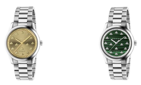 金色旭日纹拉丝表盘精美明亮,绿色孔雀石表盘优雅复古,同时饰以15只栩栩如生的蜜蜂,灵动迷人,趣味演绎明朗自然。